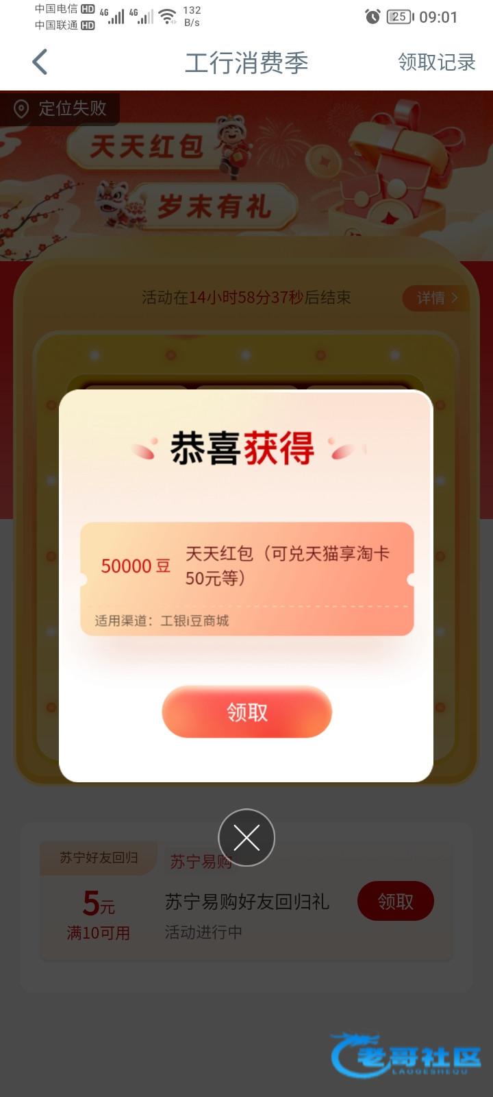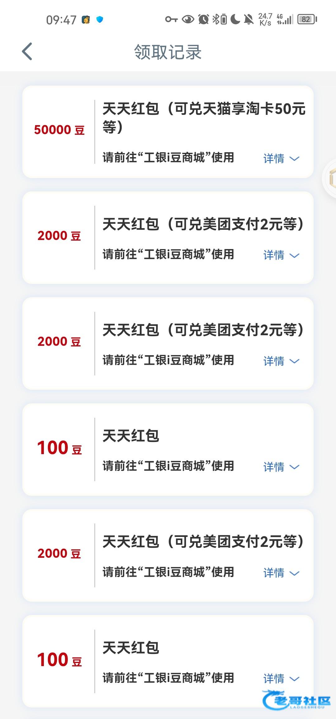 看群里几个人抽到50,我也去抽大水,以前最多两块,兑换搜工银i豆商城