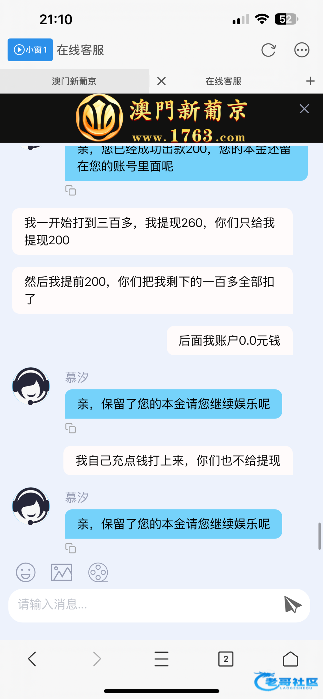 我一开始领取的26彩金,打到300多提现200剩下的全部扣了,然后我账户¥0的情况下我自己冲13玩一下,打到600多,想提现400继续玩然后直接全部扣了,冲钱玩的黑的理由是我领取了短信彩金,短信彩金都是我去年11领取的,无限重复这句话,牛比,老哥们注意一下吧白嫖不要冲这个平台
