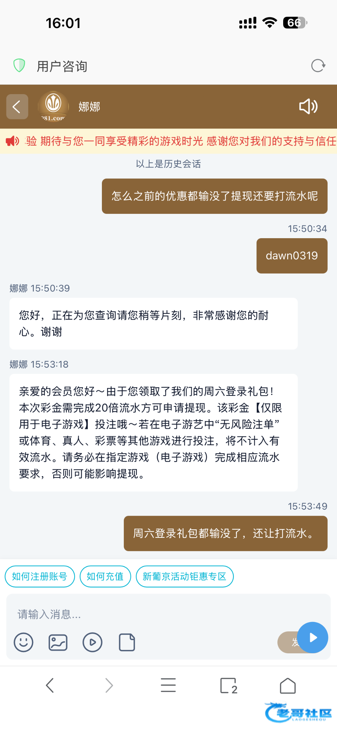 这些b台越来越多套路了,我玩那个拉斯维加斯1849那个之前领了老哥彩金28,早就输没了又充值几次,现在提款还叫我充值打3倍流水才能提款,狗庄真的过年收割