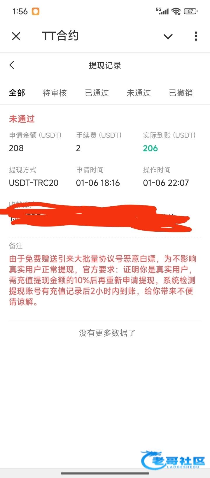 刚才提现退回来了 叫我冲10% 不知道黑不黑 有没有老哥知道的