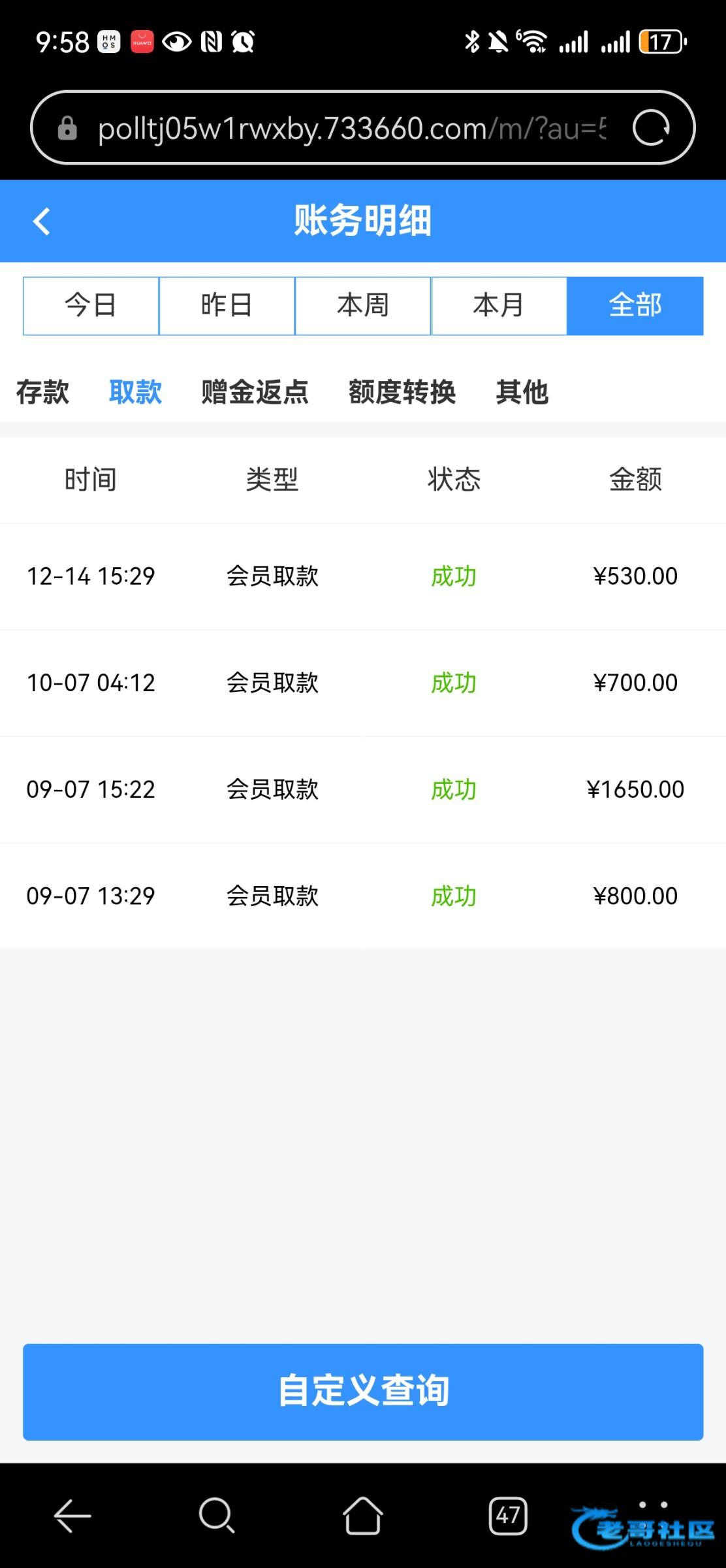 出款情况:自测(