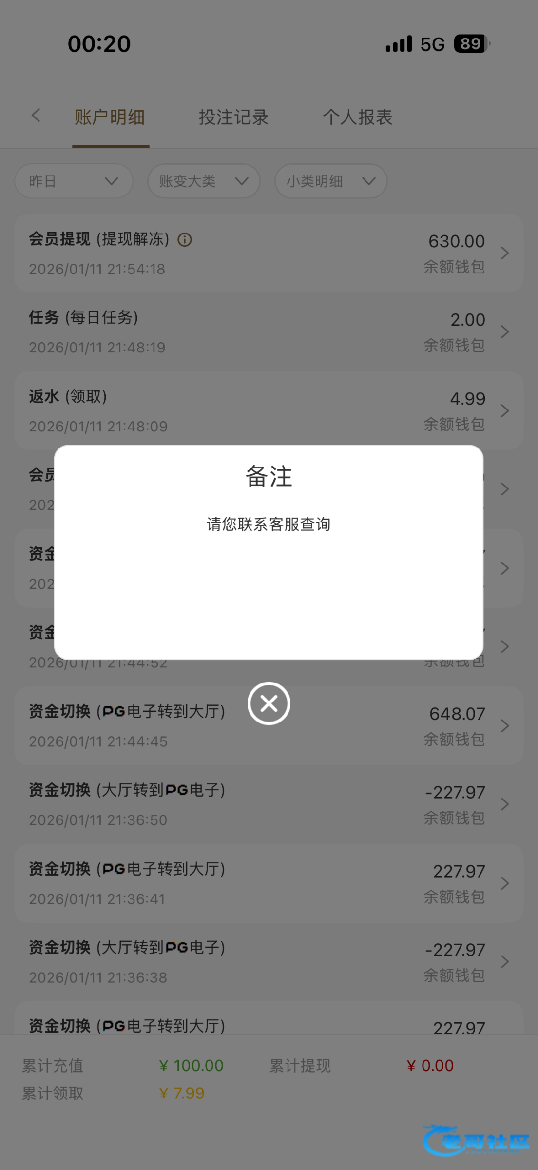 充了100正常玩赢了600直接罚20倍流水大家千万不要再玩